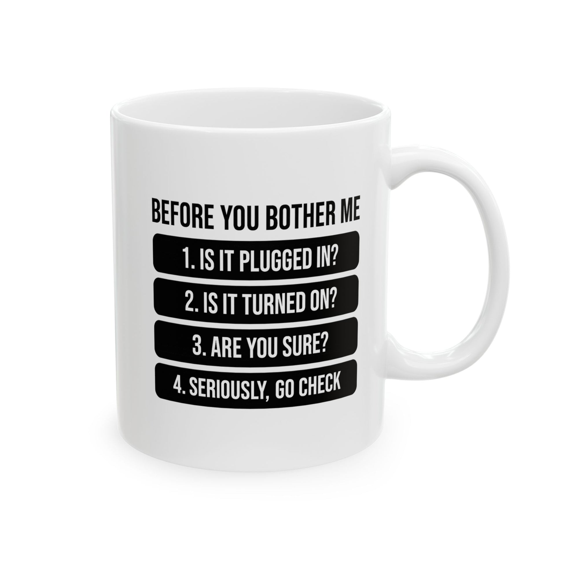 A humorous IT-themed ceramic mug that adds humor to your morning coffee routine. Great for programmers, IT professionals, or anyone who loves a good laugh. Perfect gift for birthdays, holidays, or as a thank you for your favorite IT person.