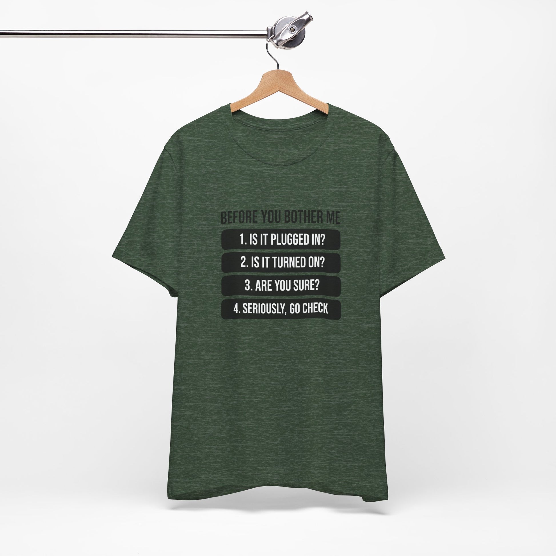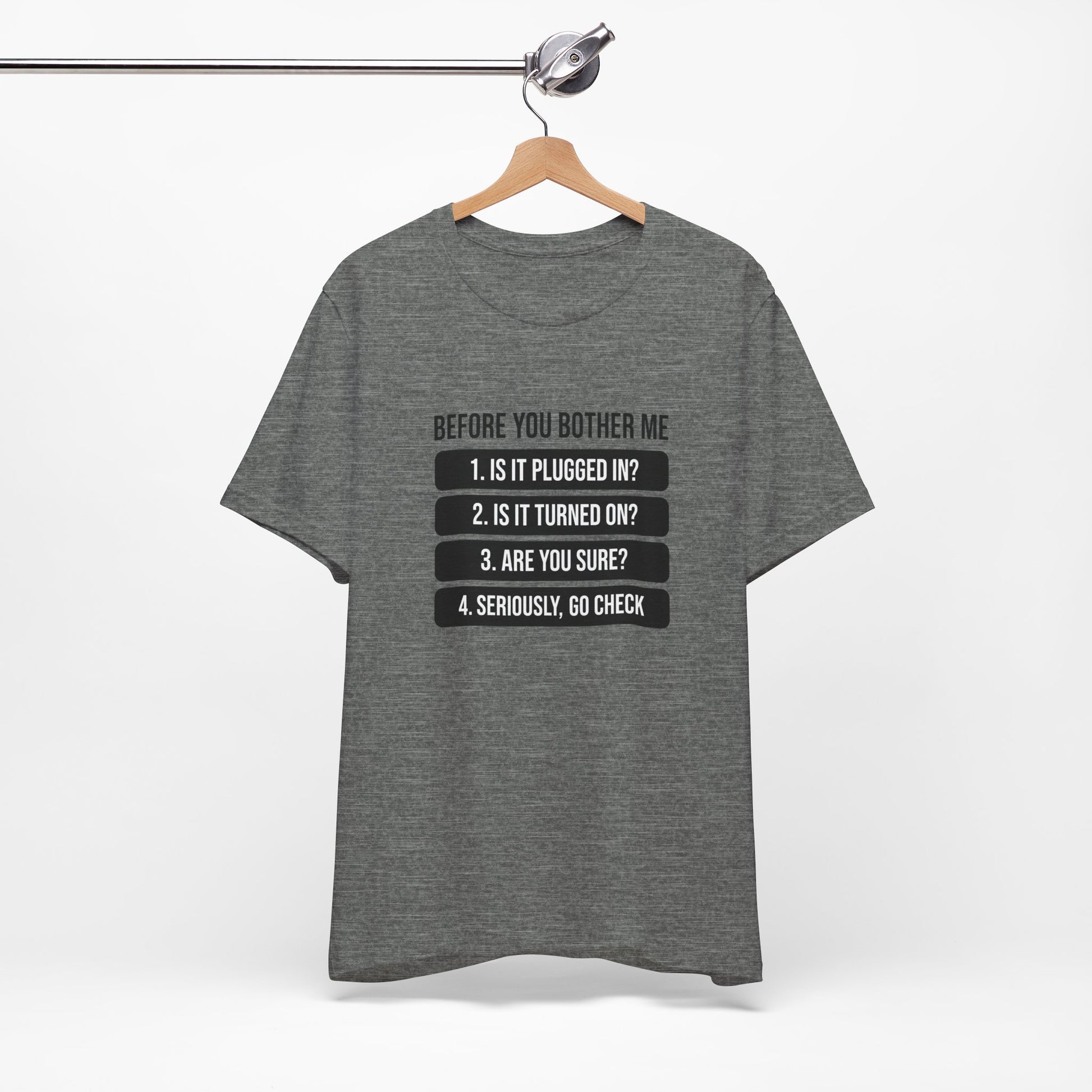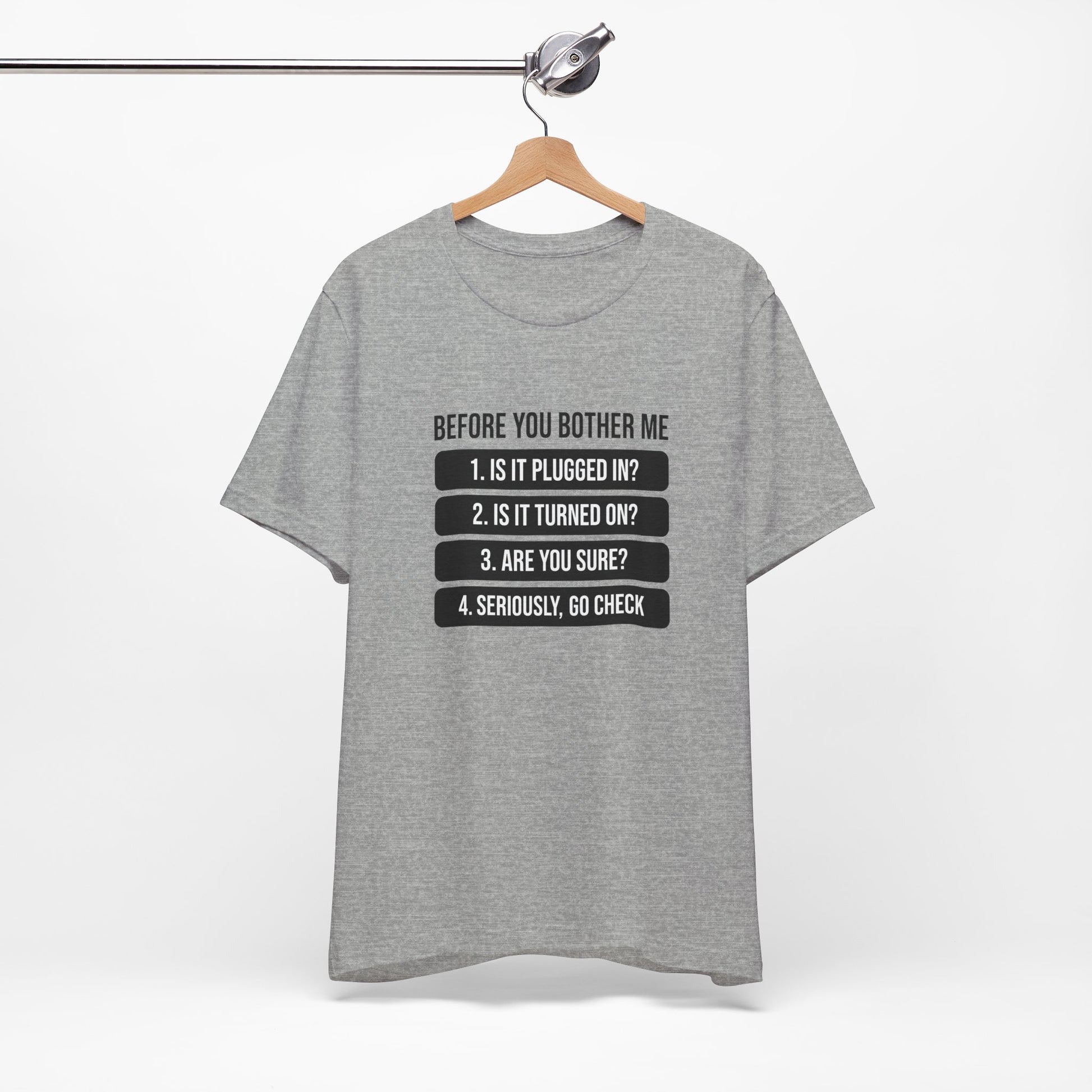 A humorous IT-themed T-shirt that is perfect for tech enthusiasts and computer geeks. This tee is great for casual wear and makes a fun conversation starter. Ideal for IT professionals, programmers, and anyone who loves a good tech pun. Perfect for gifting on birthdays, holidays, and geeky celebrations.