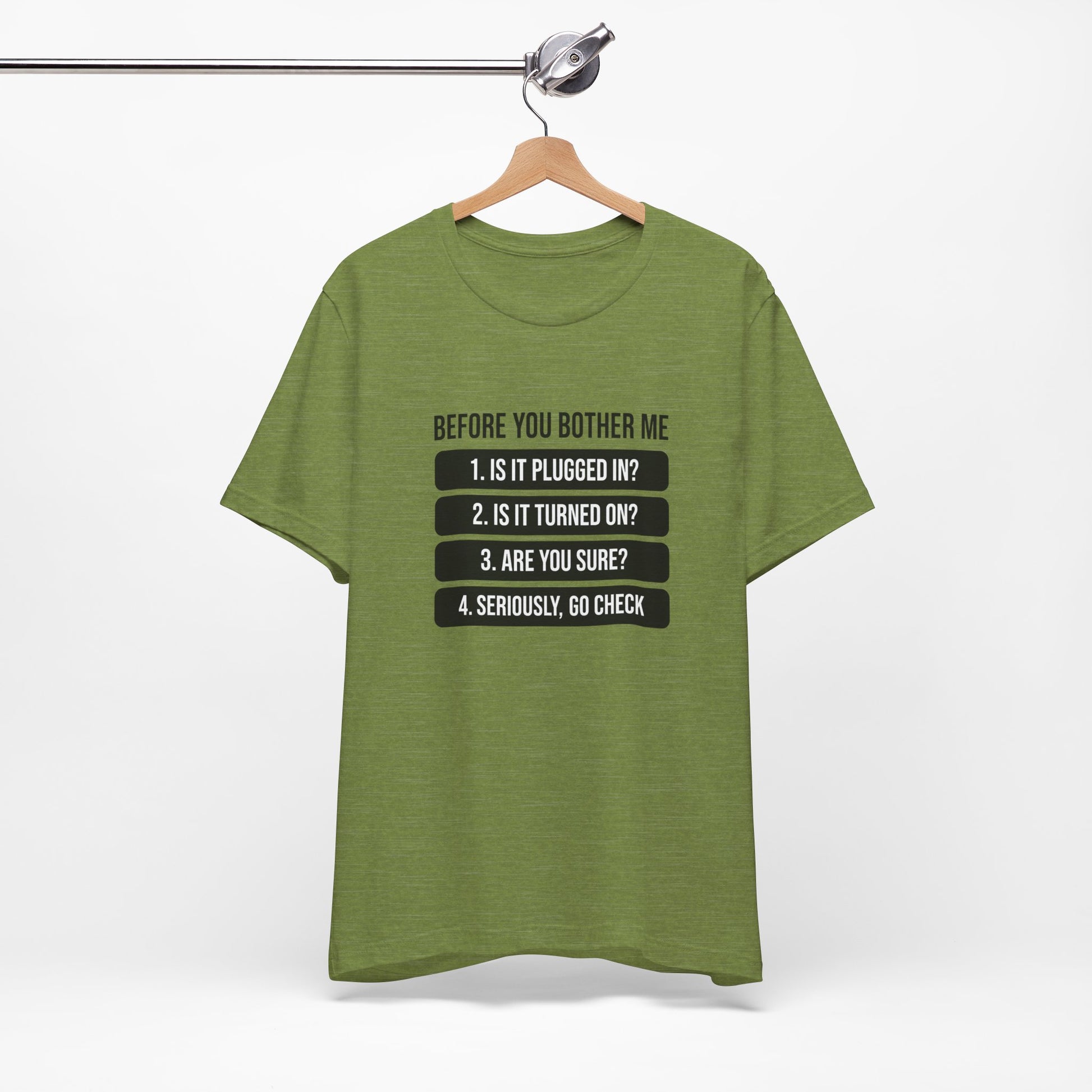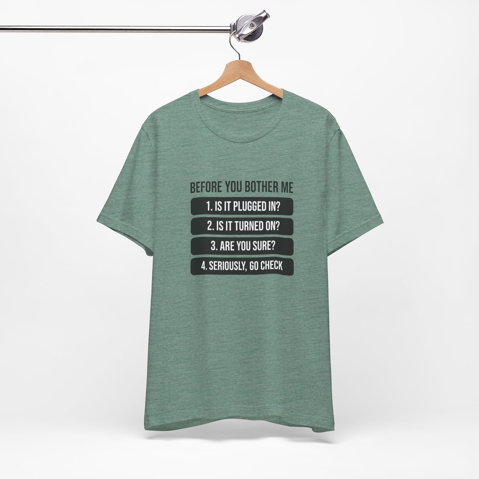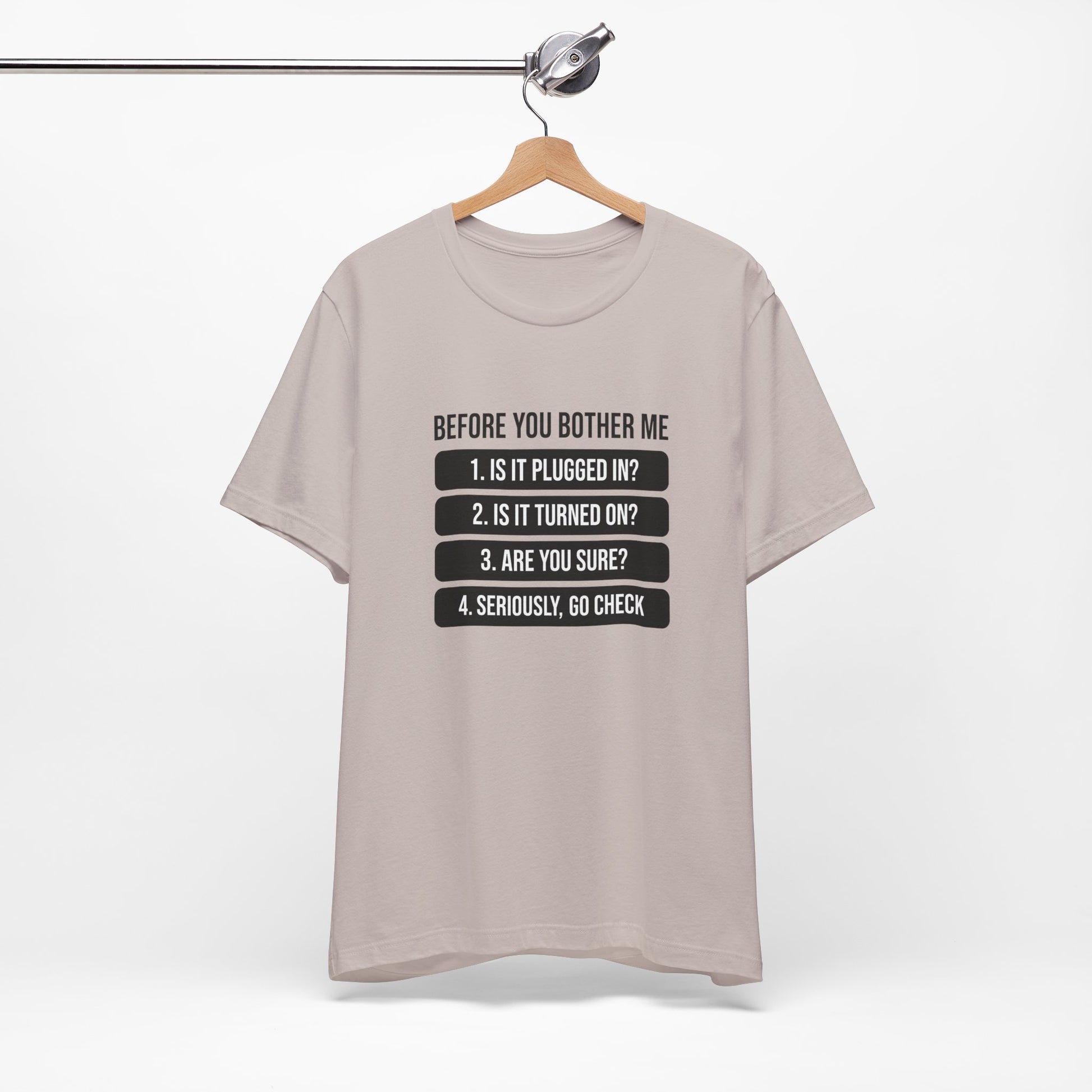 A humorous IT-themed T-shirt that is perfect for tech enthusiasts and computer geeks. This tee is great for casual wear and makes a fun conversation starter. Ideal for IT professionals, programmers, and anyone who loves a good tech pun. Perfect for gifting on birthdays, holidays, and geeky celebrations.
